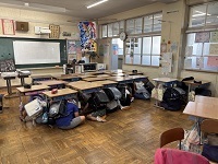 今日は竜巻を想定した避難訓練でした。どのクラスも素早くシェルターをつくることができました。校長先生からは、今回は屋内で避難をしましたが、もし屋外で竜巻が起きたときには「3匹のこぶた」のように、頑丈な建物に入って身を守ってくださいとお話がありました。これからも自分の身を守れるように、真剣に訓練に取り組んでいきましょうね!