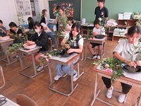 9月25日(木)6年生が室町文化、生け花の体験をしました。
