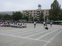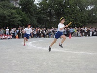 タイムを縮められるように、各クラスでバトンパスの練習をしてきました。