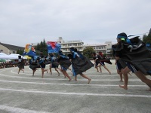 4年生は「ソーラン節」を踊りました。力強く、かっこいい「ソーラン節」を披露することができました。一人ひとりの思いが込められた漢字一文字を背中に背負い、がんばりました。大漁旗やかけ声をクラスの仲間と考え、協力して取り組みました。全力で踊る姿に感動しましたよ!