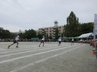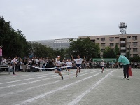 4年生徒競走「瞬速70m ~一瞬にかけろ~」では、スタートからゴールまで一生懸命走る姿が素敵でした。みなさん、自分の力を出し切っていましたね!みなさんの全力ダッシュ、まるで風みたいに速かったです。これからもいろいろなことに全力で取り組んでくださいね!