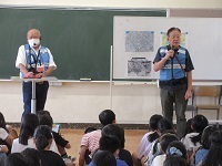 10月10日に、5年生の総合的な学習で、講師の先生を招いて「防災」についての学習を行いました。防災倉庫の中を見たりメモをとりながら地域の防災に関する話を聞いたりするなど、興味を高めながら取り組みました。今回学んだことを、今後の防災に関する学習に生かしていきたいです。
