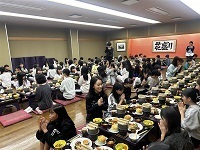 夕食の時間がきました。豪華な料理を美味しそうに食べています。日光の名物、湯葉の味を堪能していました。