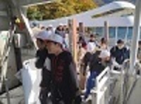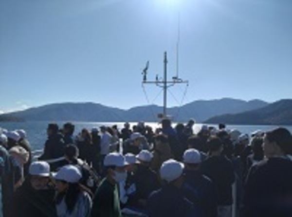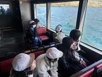 ホテル「花の季」を出発後、竜頭の滝を下りながら見学し、中禅寺湖を渡るため遊覧船に乗りました。今日も6年辻っ子を祝福するかのような素敵な天気に恵まれ、6年辻っ子達は遊覧船の甲板に出て澄み切った空気を存分に味わったり、中禅寺湖を囲む色鮮やかな紅葉を楽しんだりして、中禅寺湖遊覧を満喫していました!この後は立木観音桟橋に到着後、世界遺産「日光東照宮」に向かいます!