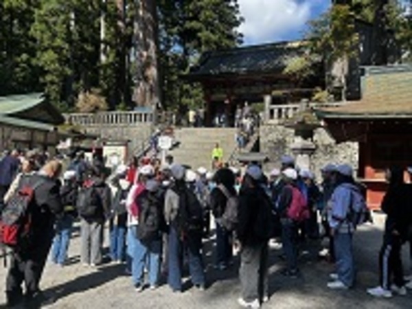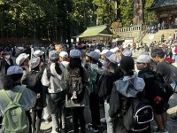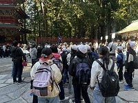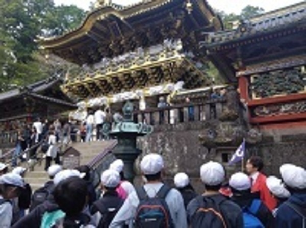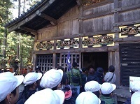 世界遺産「日光東照宮」に無事到着しました。東照宮ではガイドの方に様々な建築物の説明をしていただきました。有名な「陽明門」「三猿」「眠り猫」など、世界遺産の見事な建築物に6年辻っ子は感動していました。