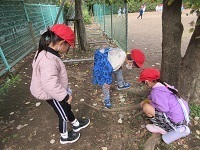 1年生がドングリや落ち葉等、秋の物を探しに鉢の木公園へ行きました。公園に着いてびっくり!「葉っぱの色がちがーう!」「小さいドングリもあるんだー!」。たくさんの発見をして楽しみながら、秋らしい物を見つけて拾うことができました。一通り終わったら、せっかく公園に来たので、お友達と楽しく遊びました。外で体を動かすのにぴったりな季節になったので、みんな思いっきり体を動かしました。違うクラスの子とも仲良くなれたね!とても楽しい1日になりました!