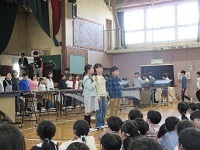4年生は合唱「believe」、リコーダー奏「遠き山に日はおちて」、合奏「『新世界』より第2楽章、第4楽章」を行いました。合唱は元気な声とやさしい声を織り交ぜた素敵な歌になっていました。これからも歌詞のように友達と支え合って過ごしていきましょうね。リコーダー奏、合奏は練習を頑張ったことがよく伝わる演奏でした。小中合同音楽会でも頑張ってくださいね!