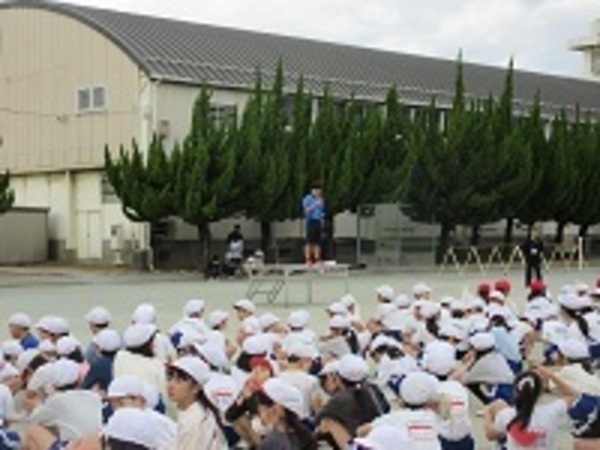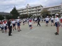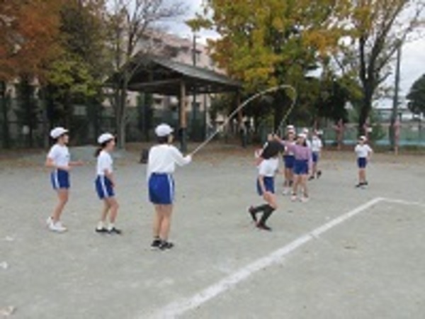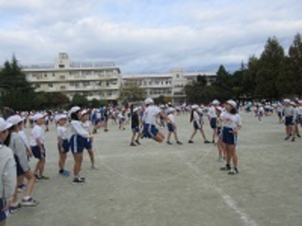 みんなで声を出してリズムに乗って飛ぶ姿が見られました。はじめて朝会で長なわをやる1年生も一生懸命とりくみました。