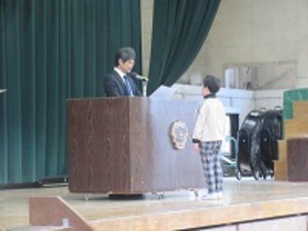 理科、図工、読書感想文、家庭科などで頑張った辻っ子たちの表彰がありました。体育館での表彰朝会は今年度初めてでしたね。少し緊張している様子も見られましたが、堂々と返事をして賞状を受け取っていました。