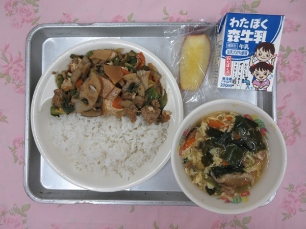 麦ごはん ひじきのふりかけ 牛乳 ゼリーフライ 豚汁