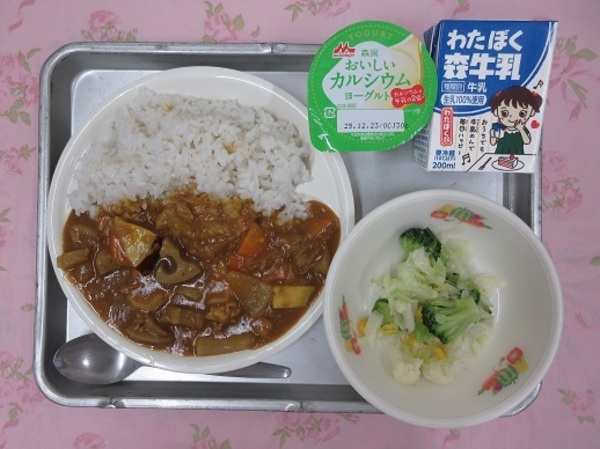 冬野菜カレー(麦ごはん) 牛乳 花野菜サラダ ヨーグルト