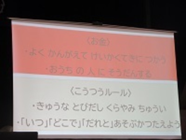 冬休みの過ごし方については「お金の使い方」「交通ルール」について図を使ってお話しました。