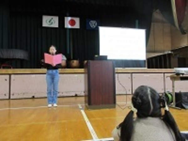 本日、児童朝会で代表委員会から「3つの知る」「冬休みの過ごし方について」の話がありました。