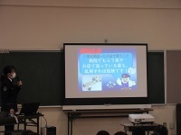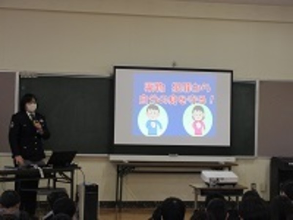 1月30日(金)薬物乱用防止教室がありました。埼玉県警察のあおぞらの方にきていただき、薬物乱用の危険性について教えてもらいました。