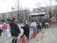 2/17(火)~19(木)の業間休みに、運動委員会主催の「投げ投げキャンペーン」を行いました。「ひらいて ぱたん お空にむかって とんでいけー」のかけ声を大切に、投力アップを目指して、たくさんの辻っ子が参加してくれました。運動委員会の児童も優しく投げ方を教え、上手に投げられた辻っ子には拍手で称賛していました。「楽しかった!」「またやりたい!」といった声も聞こえてきましたよ!次の体力テストが楽しみですね!!