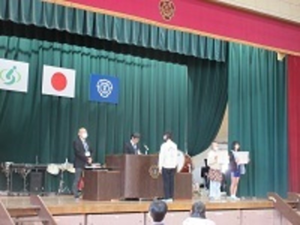 保健や図工の作品、書き初めの表彰がありました。