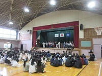 ダンスクラブが体育館で発表会を行いました。今流行りの「カリスマックス」や「ズートピア」を踊りました。クラブの時間にアドバイスをし合いながら、たくさん練習を積み重ねてきました。上手に披露できて、ダンスクラブのみんなは笑顔いっぱいでした。1年間の集大成となる、素晴らしい踊りを見せてくれました。