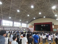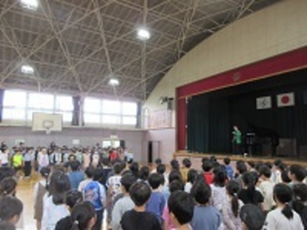 2年生から6年生が体育館に集まり、音楽朝会を行いました。1年生を温かく迎えるため、校歌の練習をしました。音楽専科の先生から迫力のある歌声を出すためにはどうすればよいか教わって頑張りました。初めに歌った時と最後では歌声が変わり、さらに素敵になりました。新しい1年生は喜んでくれるかな?明後日が楽しみですね!